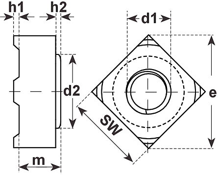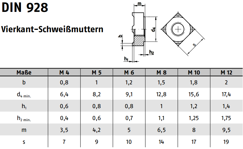 Vierkantschweissmuttern, DIN928 8 blank M10