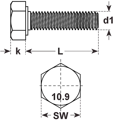 Sechskantschr. ohne Schaft mit Feingew., DIN961 ISO8676 10.9 verzinkt MF14x1,5x70/70