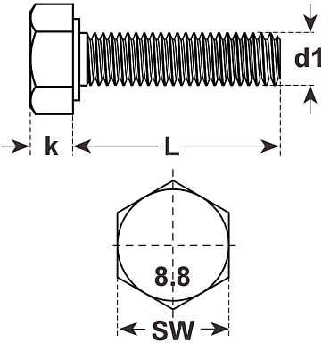 Sechskantschr. ohne Schaft mit Feingew., DIN961 ISO8676 8.8 verzinkt MF12x1,5x80/80