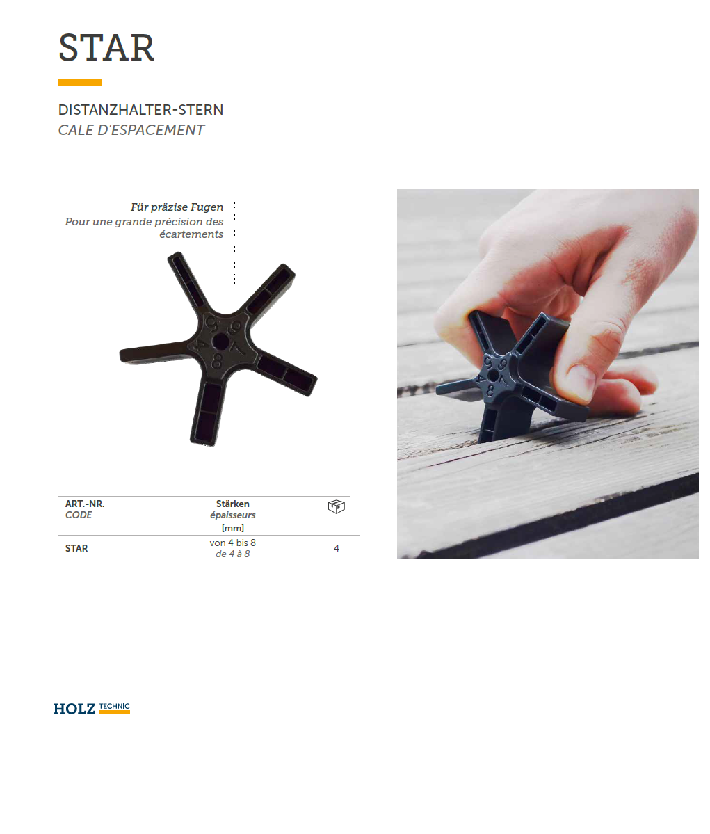 Distanzhalter-Stern, Kunststoff schwarz Stärke 4-8mm