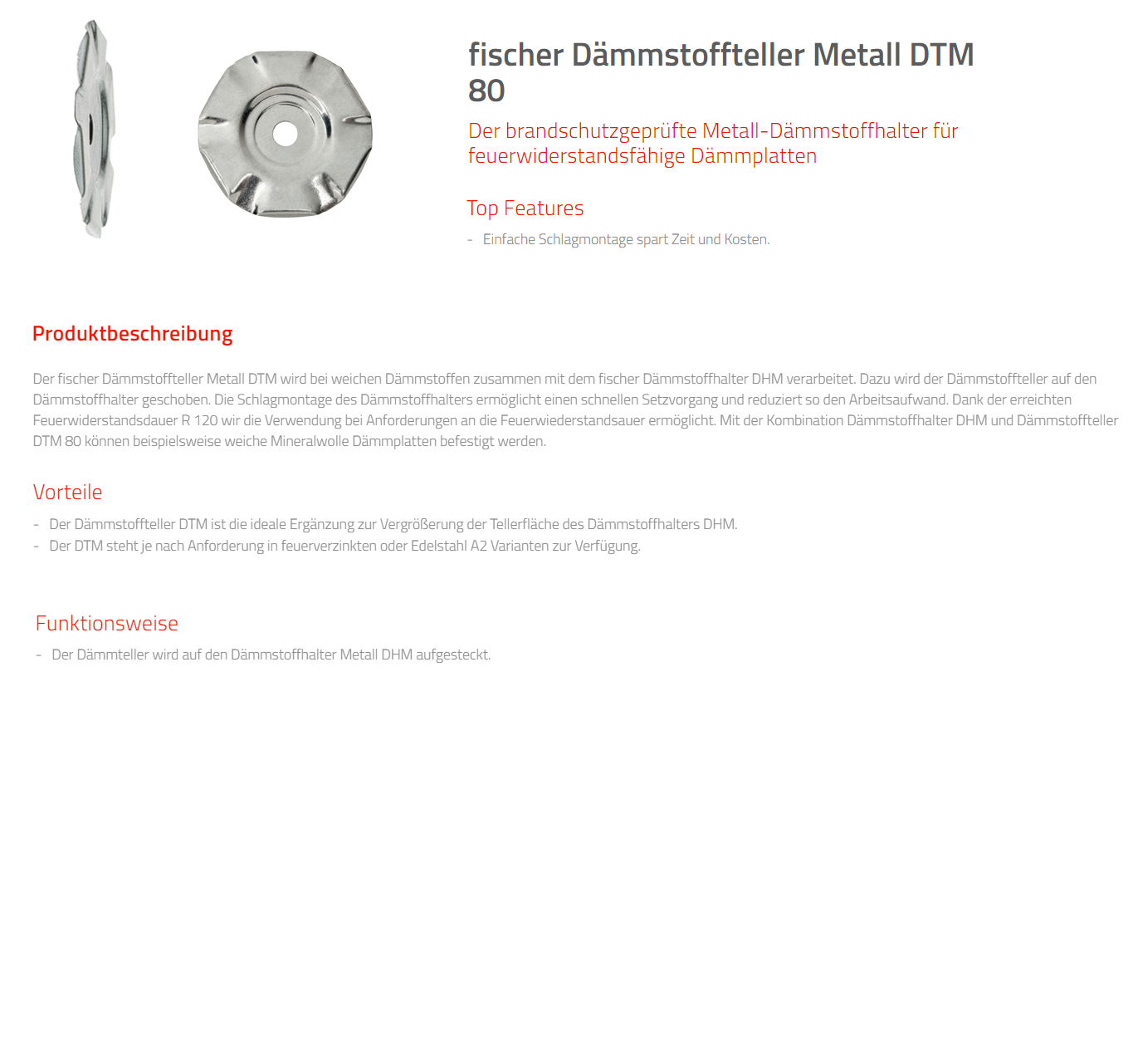 FISCHER Dämmstoffhalter Metall Teller ø 85mm, DTM 80 Stahl verzinkt 85mm