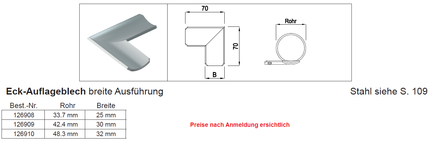 Eck-Auflagebleche breite Ausführung, Breite 30mm, rostfrei 42,4x70x70