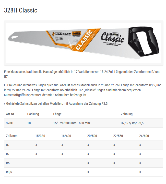 G-MAN Handsäge Classic, 380mm-15"