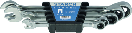 Gabelring-Ratschenschlüssel-Set STARCH 5-teilig, gerade Chrom-Vanadium-Stahl matt satiniert
