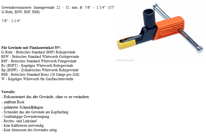 Gewinderestaurierer für Innengewinde, G22-G32