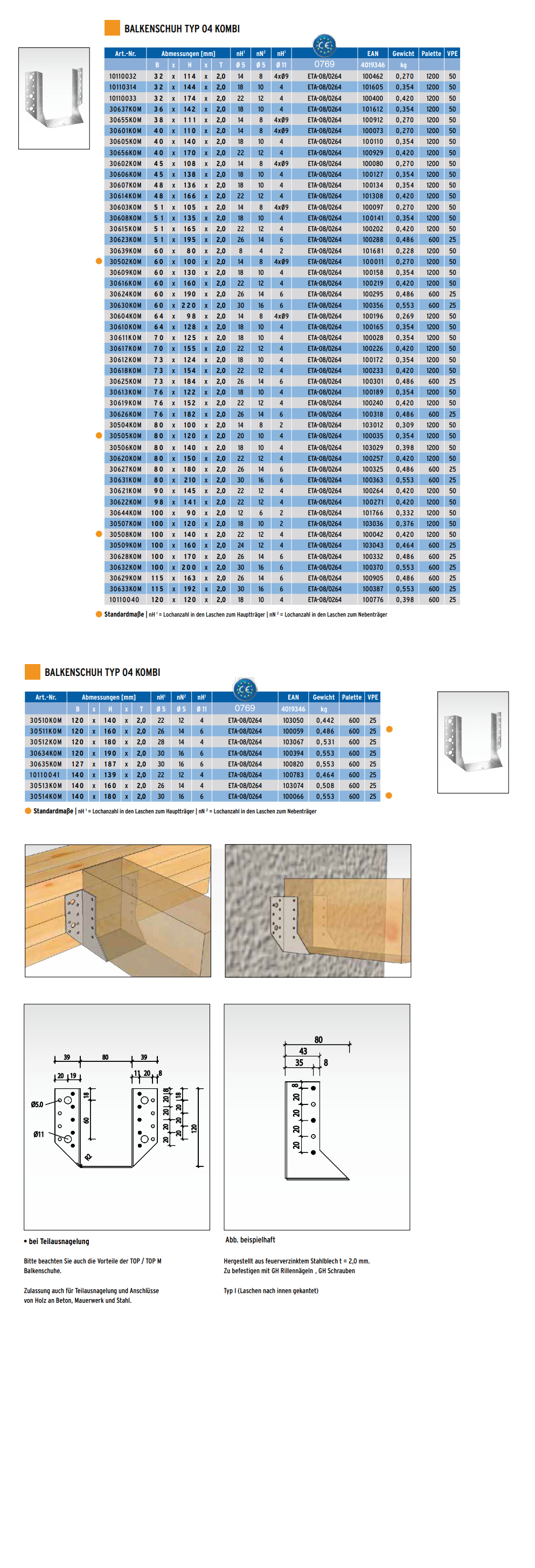 GH-Balkenschuh Typ 04 aussen Kombi, Typ 04 Stahl sendzimirverzinkt 60x100x2,0
