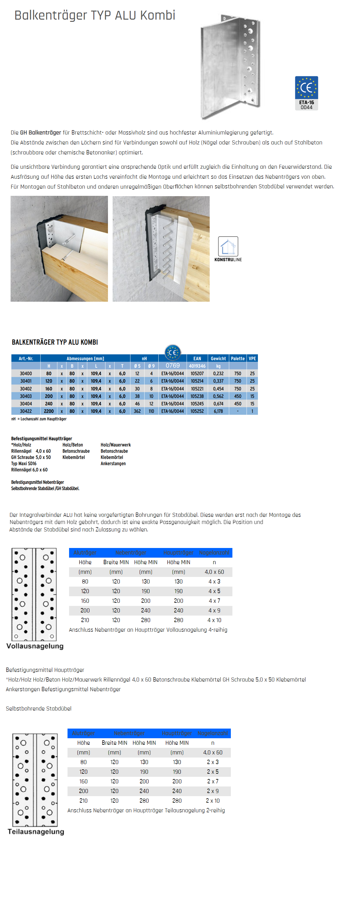 GH-Balkenträger, Typ ALU Aluminium 120x80x109,4