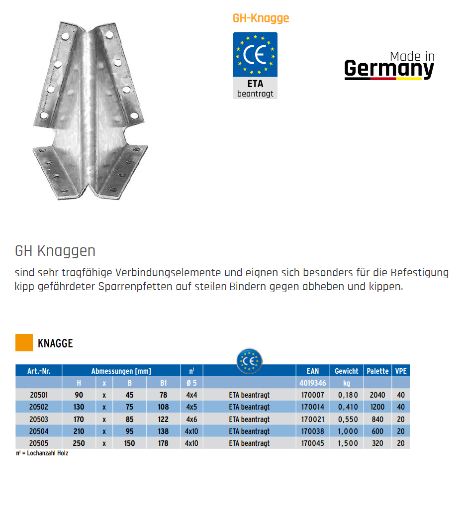 GH-Knagge, Stahl sendzimirverzinkt 90x45