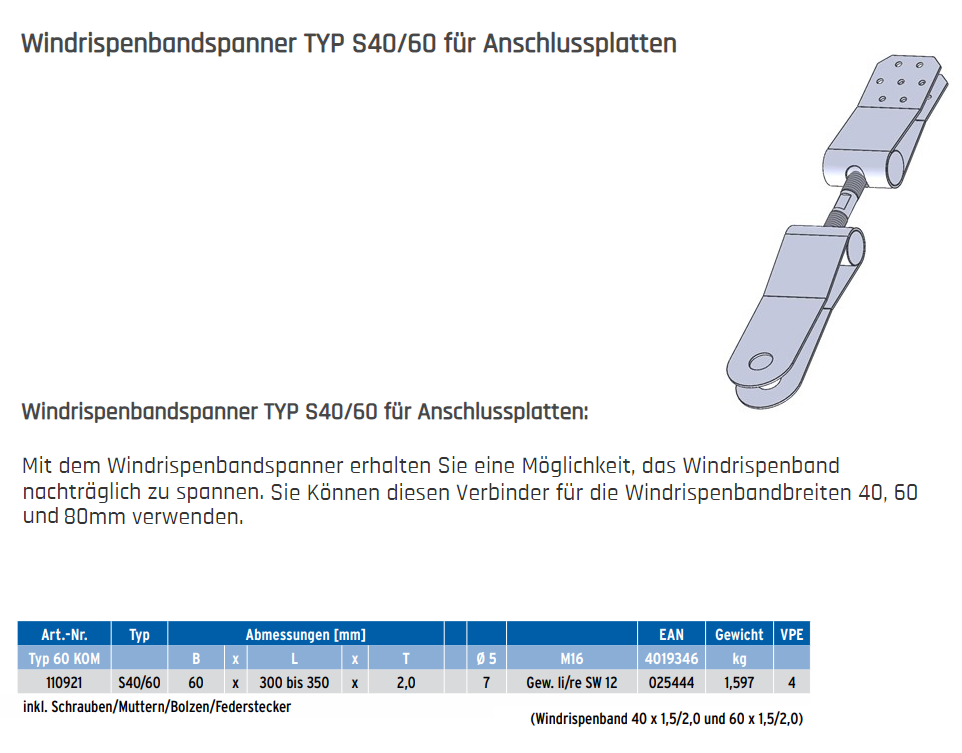 GH-Windrispenband Spanner S40/60, Typ S40/60 Stahl sendzimirverzinkt 60x300-350x2,0