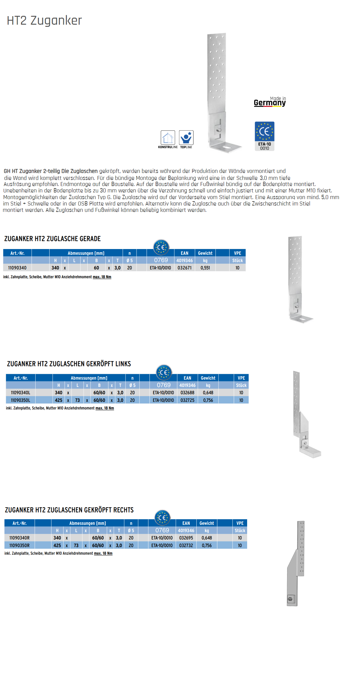GH-Zuganker Set nicht höhenverstellbar, Typ HT2 Stahl sendzimirverz. 340x60/103x73x60