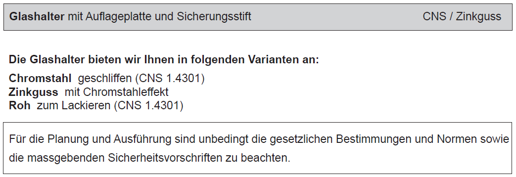 Glashalter eckige Form 45x50, gerade, rostfrei Glas 12,76