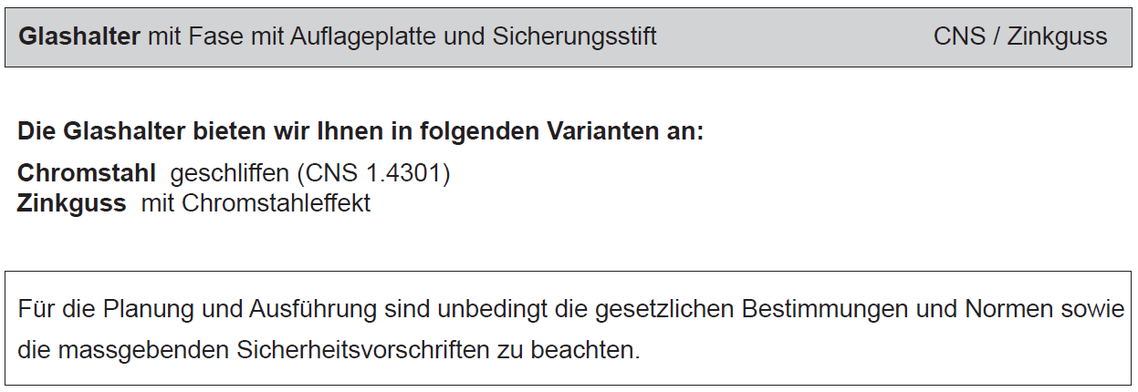 Glashalter eckige Form, mit Fase 45x50, gerade, CNS Glas 8