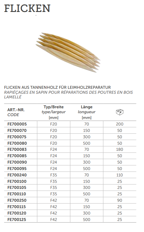 Holzflicken für Leimholzreparatur, Tanne F42x500