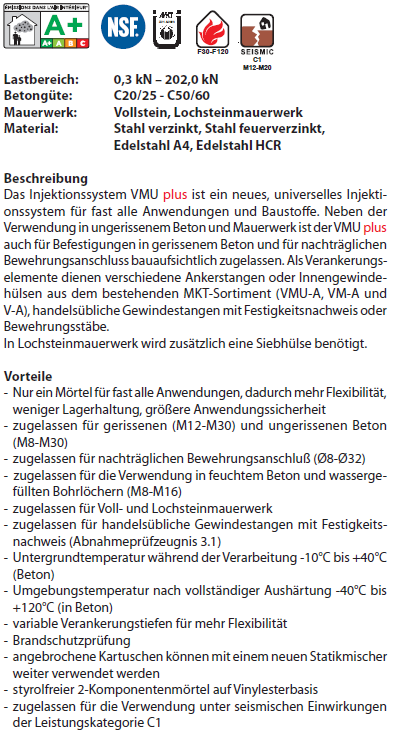 MKT-CEMENT Kartusche + 2 Mischer, VMU-PLUS styrolfrei 280ml