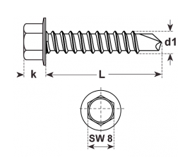Sechskant-Bohrschrauben ohne Dichtscheibe SW8, E VS BR 3-S16 Stahl verzinkt 6,3x50 max.30mm