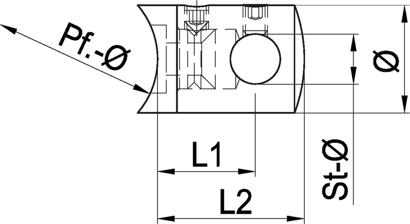 Rundstabtraverse kurz eingesattelt für Stab 10mm, CNS L1:20-L2: 30 42,4
