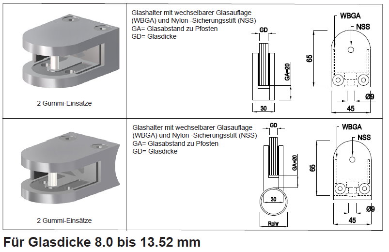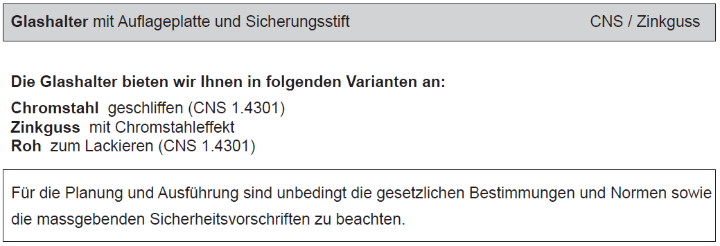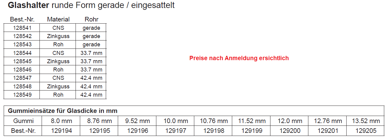 Glashalter runde Form 45x65, gerade, rostfrei Glas 12