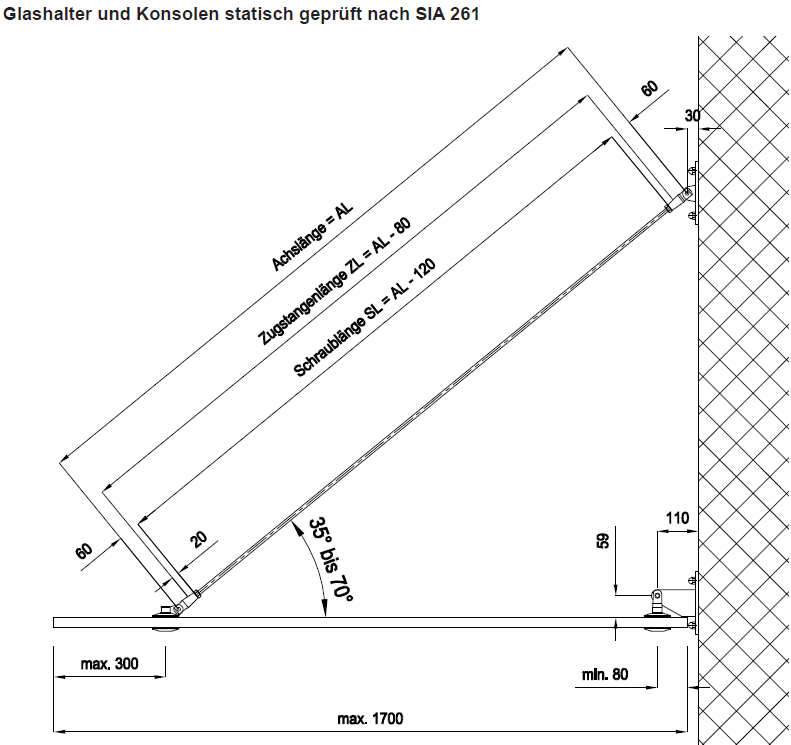 Zugstangen inkl. 2 Kontermuttern, ZS CNS 1.4305 1501..2000mm M12