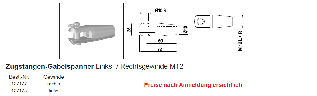 Zugstangen-Gabelspanner, Rechtsgewinde, 1.4301 M12