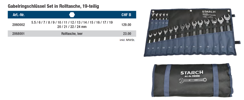 Gabelringschlüssel-Set STARCH 19-teilig, Chrom-Vanadium-Stahl matt satiniert