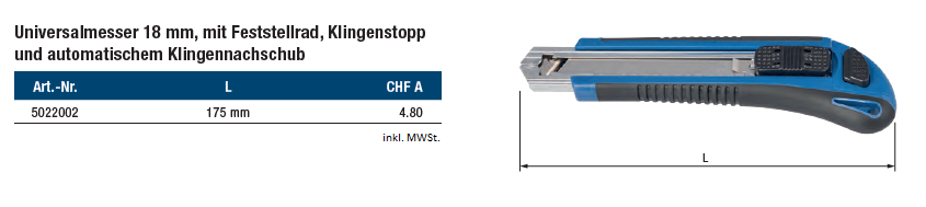 Universalmesser 18mm STARCH m. Feststellrad, 175mm