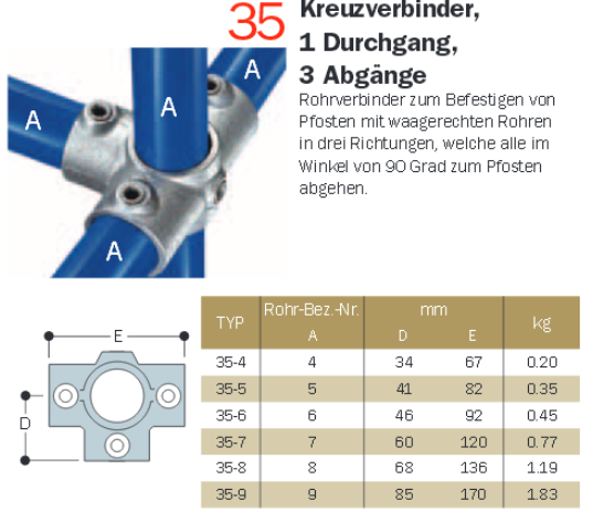 Kreuzverbinder Kee Klamp Temperguss, Typ 35-4 feuerverzinkt 1-2 Zoll