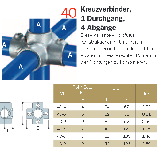 Kreuzverbinder Kee Klamp Temperguss, Typ 40-7 feuerverzinkt 1 1-4 Zoll