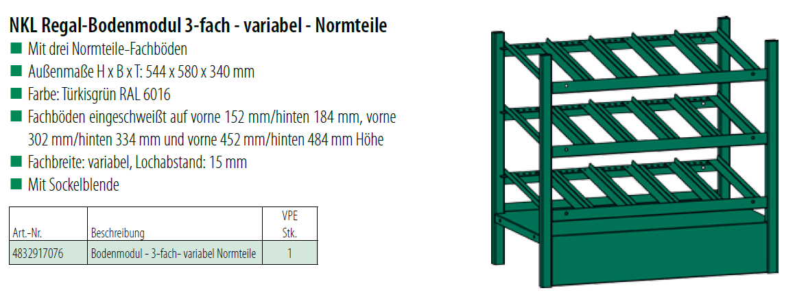 Küwi NKL Regal-Bodenmodul 3-fach-variabel-Norm, Stahl, RAL6016, türkisgrün 544x580x340