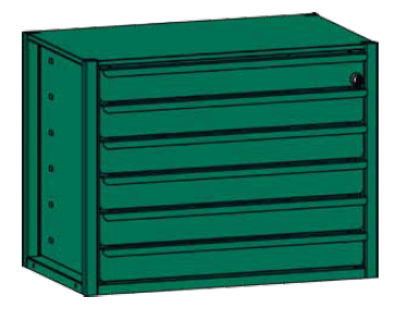 Küwi NKL Regal-Schubladen 6-fach, abschliessbar, Stahl, RAL6016, türkisgrün 444x580x340