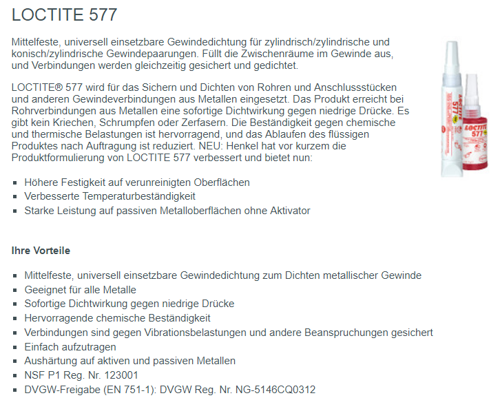 Loctite anaerobe Gewindedichtung, Typ 577 mittelfest, gelb 50ml
