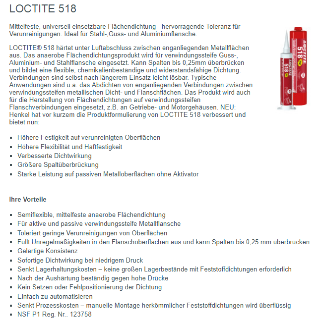 Loctite Flächendichtung, Typ 518 mittelfest, rot 300ml