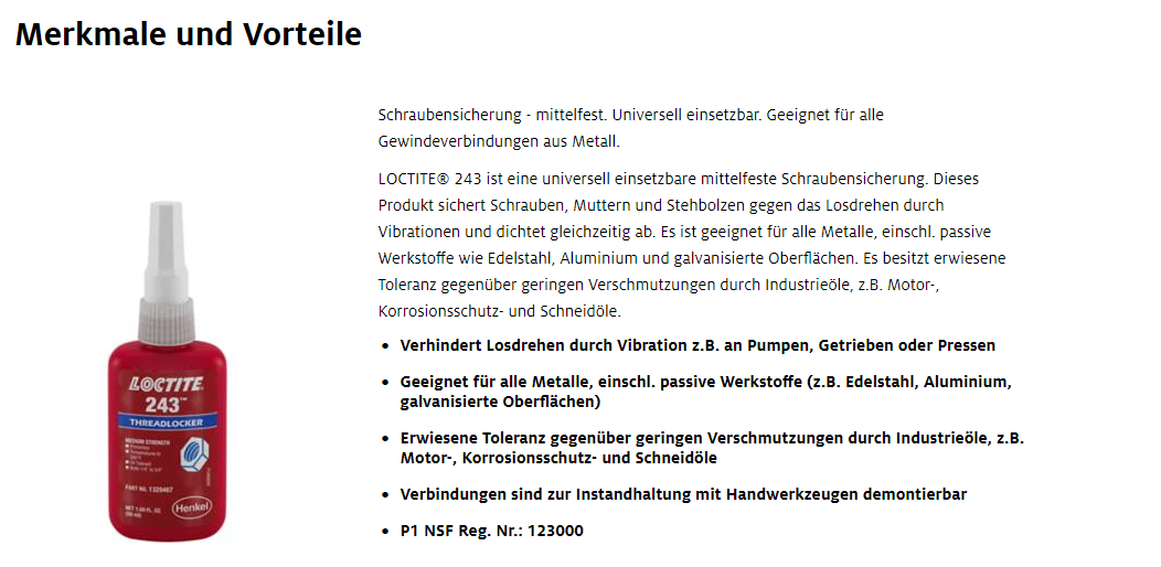 Loctite Schraubensicherung, Typ 243 mittelfest, blau 10ml