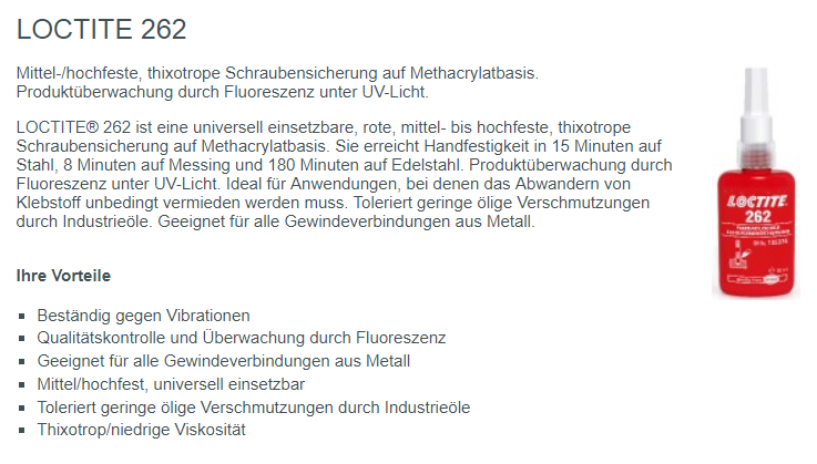 Loctite Schraubensicherung, Typ 262 mittel- bis hochfest, rot 250ml