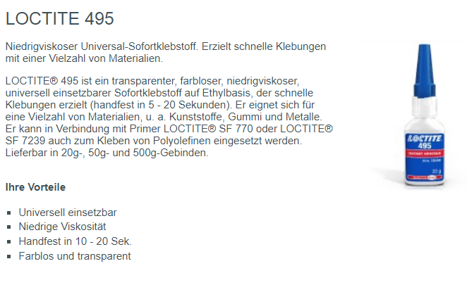 Loctite Sofortklebstoff, Typ 495 transparent, farblos 20g