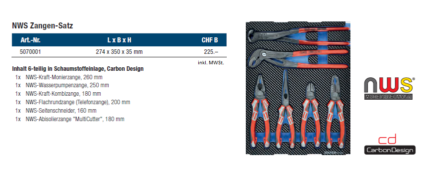 NWS Zangen-Satz STARCH 6-teilig, 274x350x35
