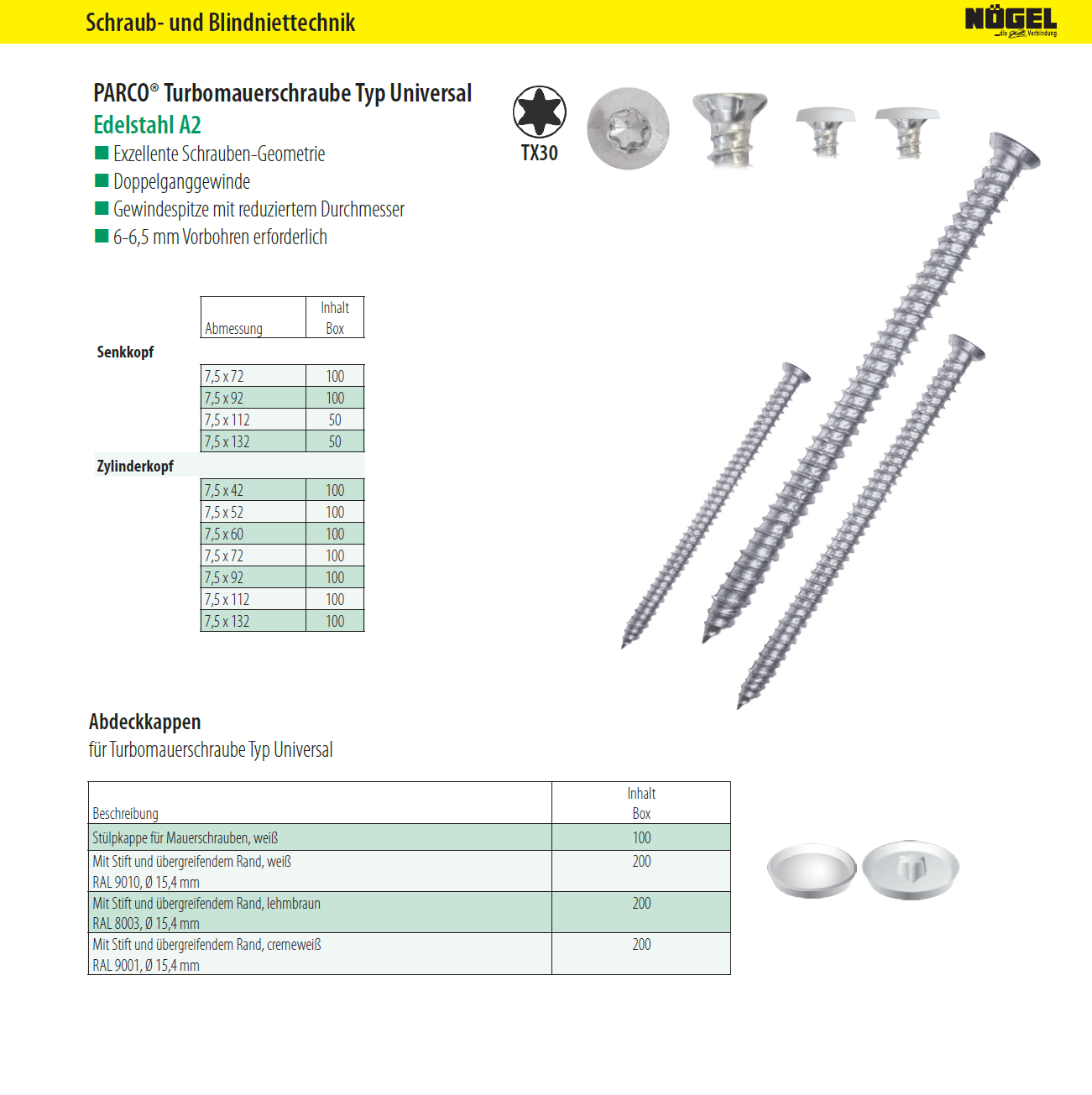 Abdeckkappe f. Turbo-Mauerschrauben TX30, RAL9010, reinweiss ø16mm