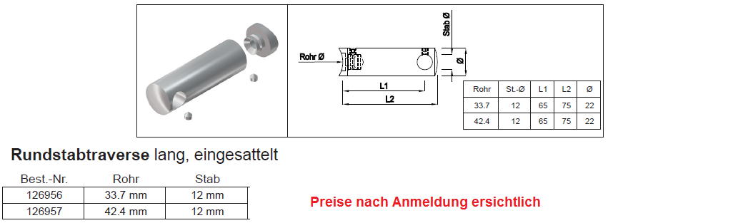 Rundstabtraversen lange, eingesattelt, 1.4301 P:42,4 Stab:12