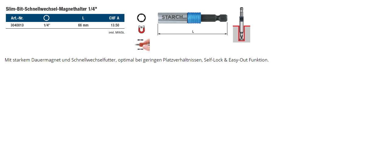 Slim-Bit-Schnellwechsel-Magnethalter STARCH 1/4", 66mm 1/4"