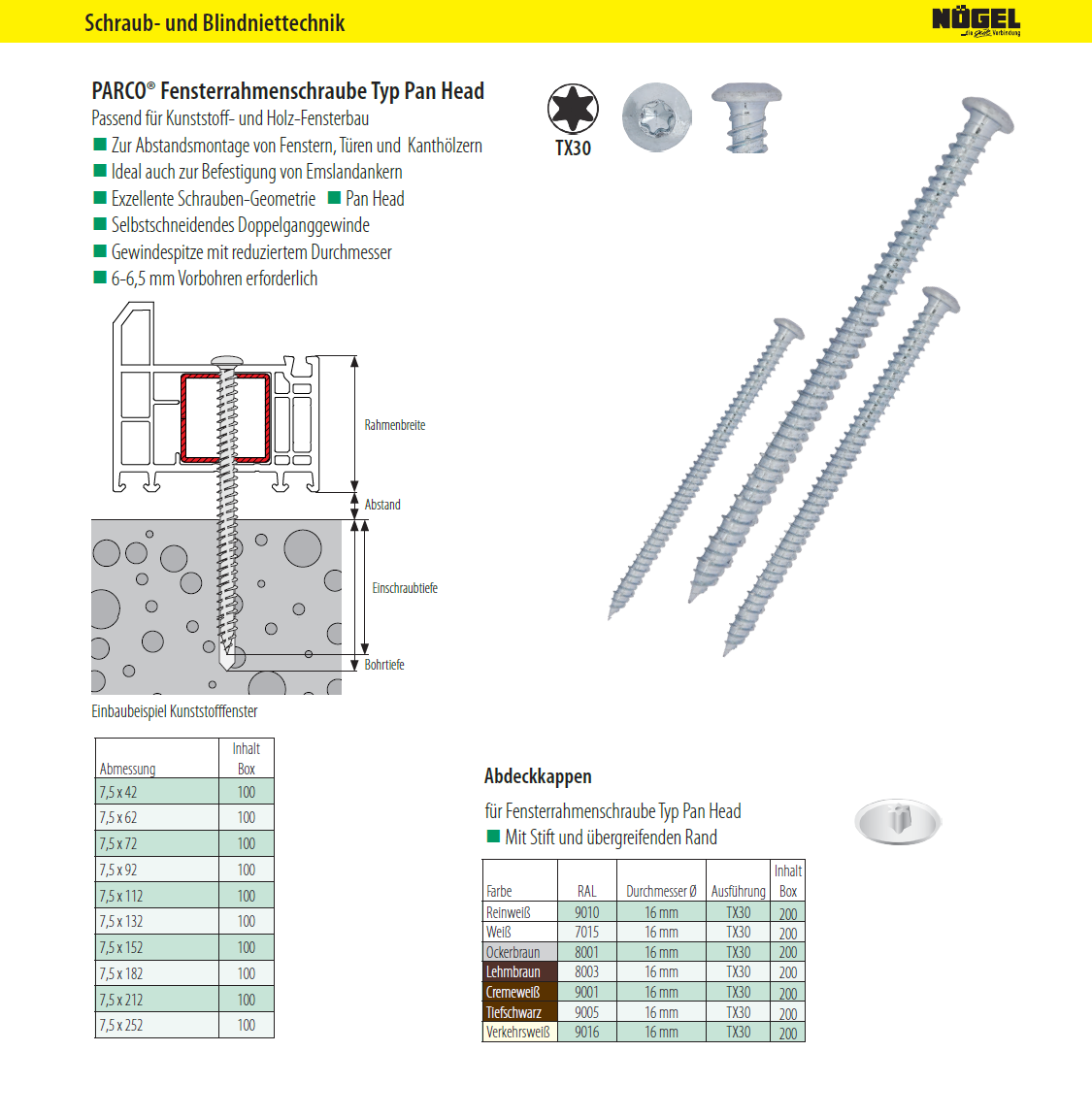 PARCO® Fensterrahmenschrauben Pan Head Torx, Stahl verzinkt 7,5x182