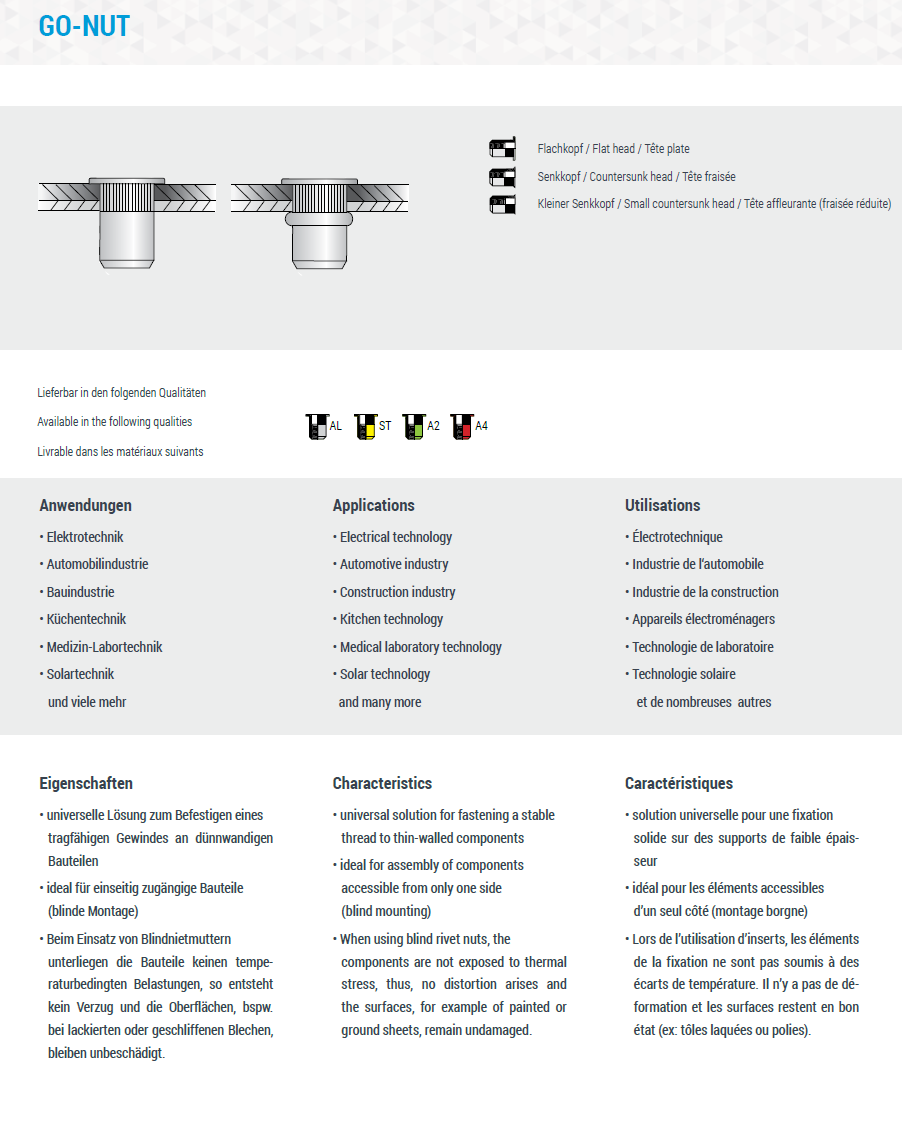 Blindnietmuttern Senkkopf GO-NUT, Stahl verzinkt M12x25,0 K:1,7-4,5