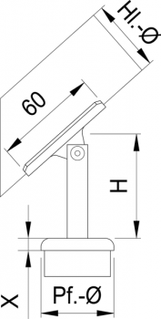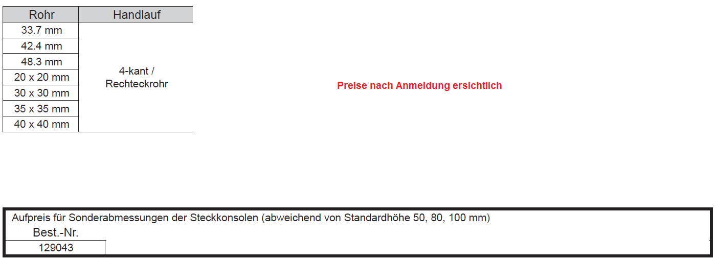 Steckkonsole bew., flache Rohrkappe f. 4kt. Rohr, 1.4301 33,7 H:100