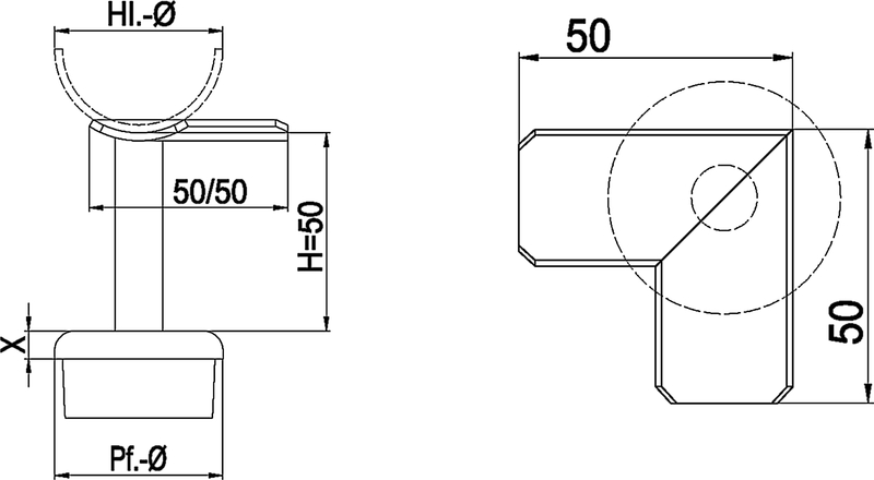 Steckkonsole fest gerade Kappe & Eckauflage, 1.4301 42,4 H:50 A: 42,4mm