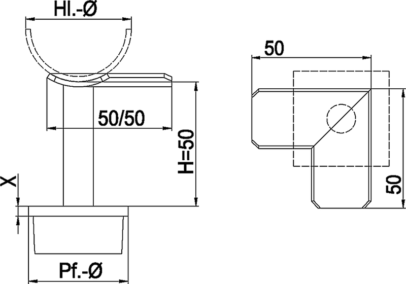 Steckkonsole fest, quadr. Kappe & Eckauflage H80, 1.4301 48,3-20x20