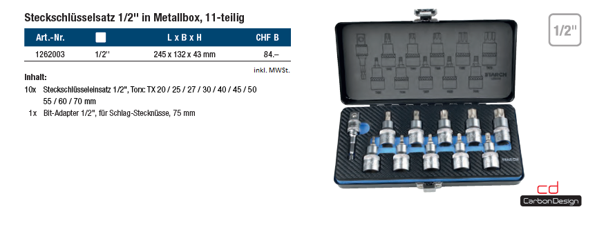 Steckschlüsselsatz STARCH 1/2" 11-teilig TX, in Metallbox 245x132x43