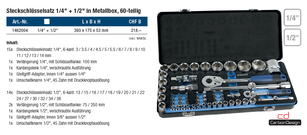 Steckschlüsselsatz STARCH 1/4 u. 1/2" 60-teilig, in Metallbox 393x175x53