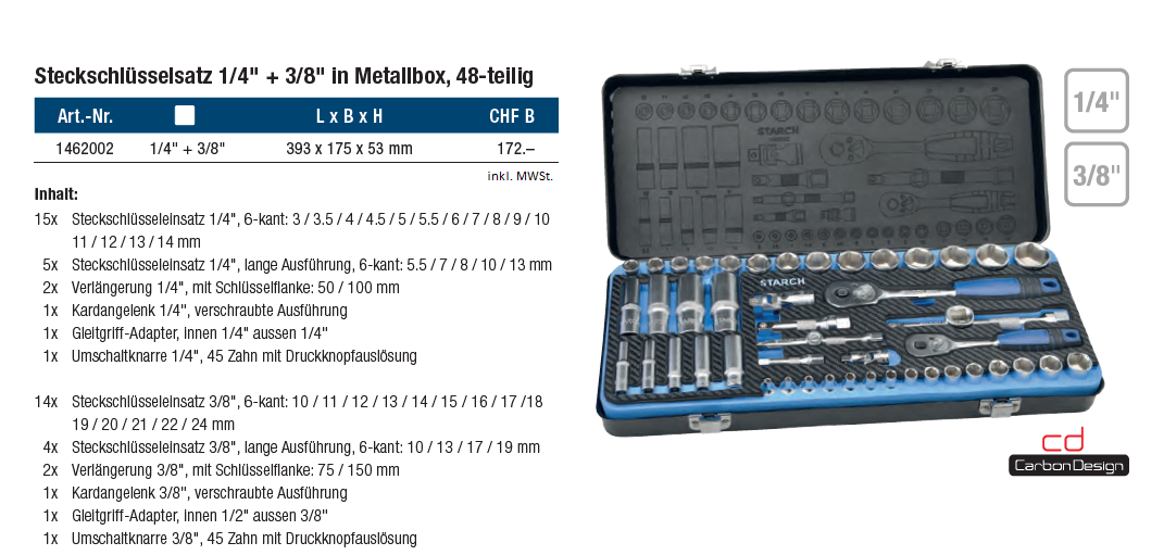 Steckschlüsselsatz STARCH 1/4 u. 3/8" 48-teilig, in Metallbox 393x175x53