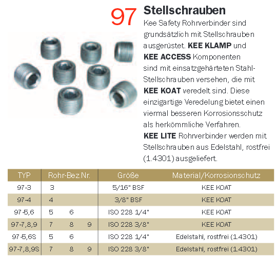 Stellschrauben Kee Klamp Temperguss, Typ 97-56 Stahl KEE KOAT zu Typ 5+6