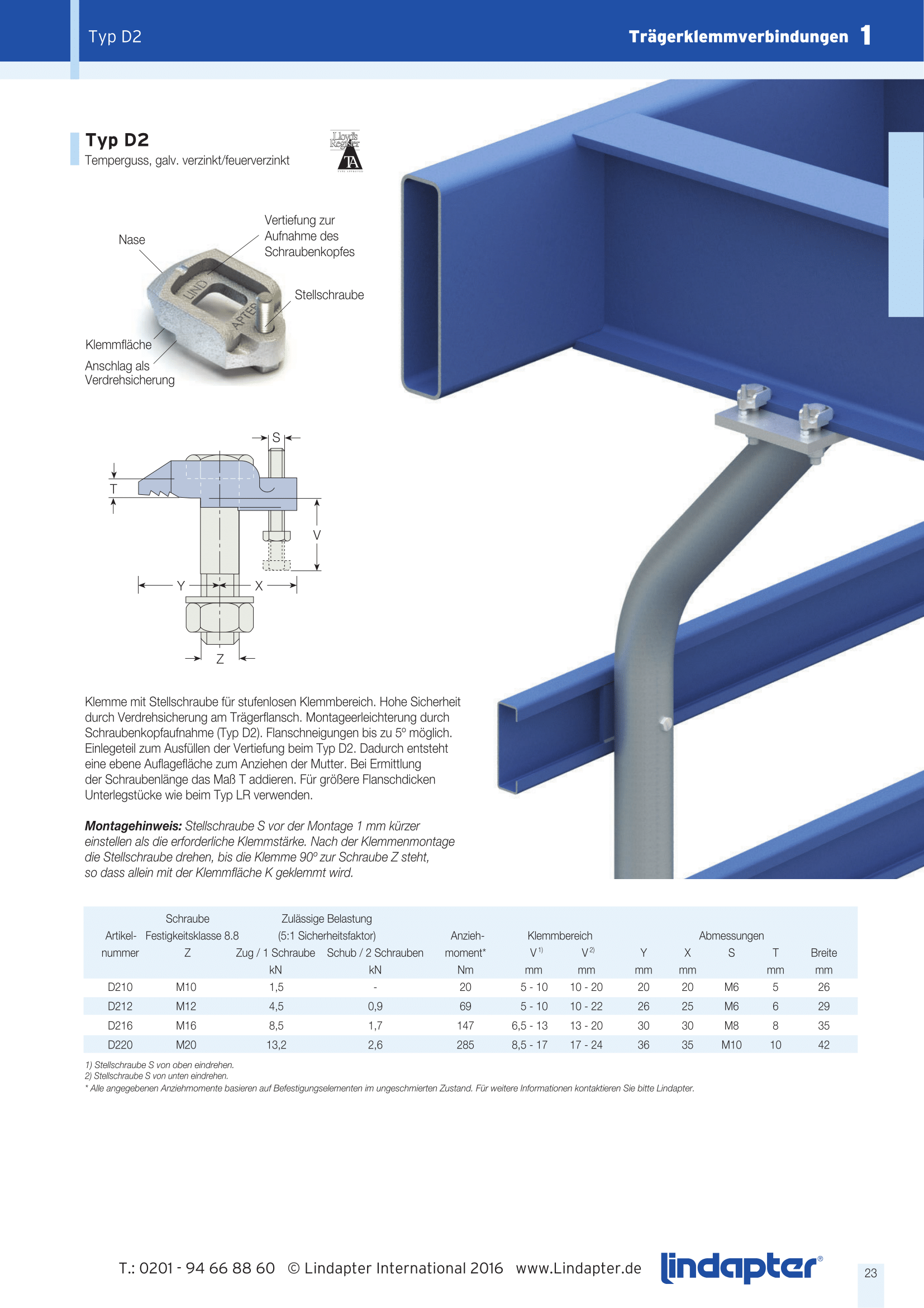 Klemmteile Lindapter, Typ W Temperguss verzinkt M10