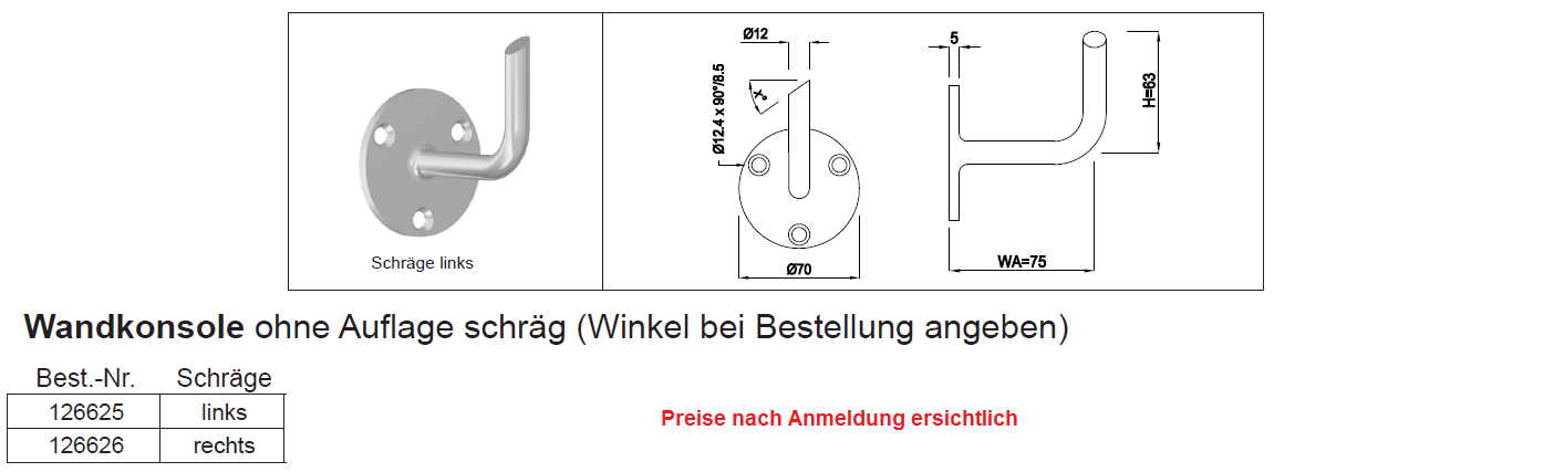 Wandkonsole ohne Auflage Schräge rechts Guss, CNS 1.4301 WP 70x5